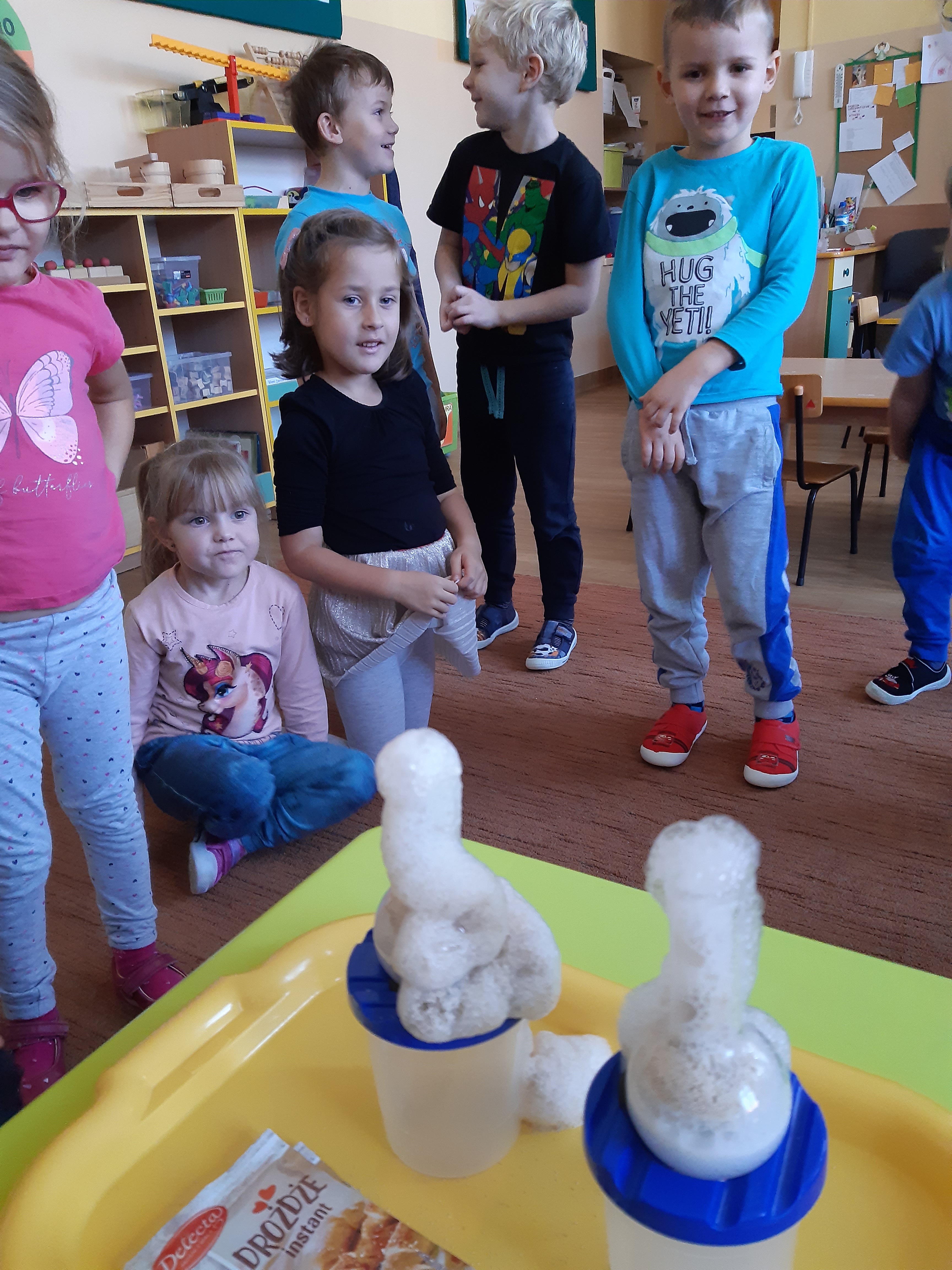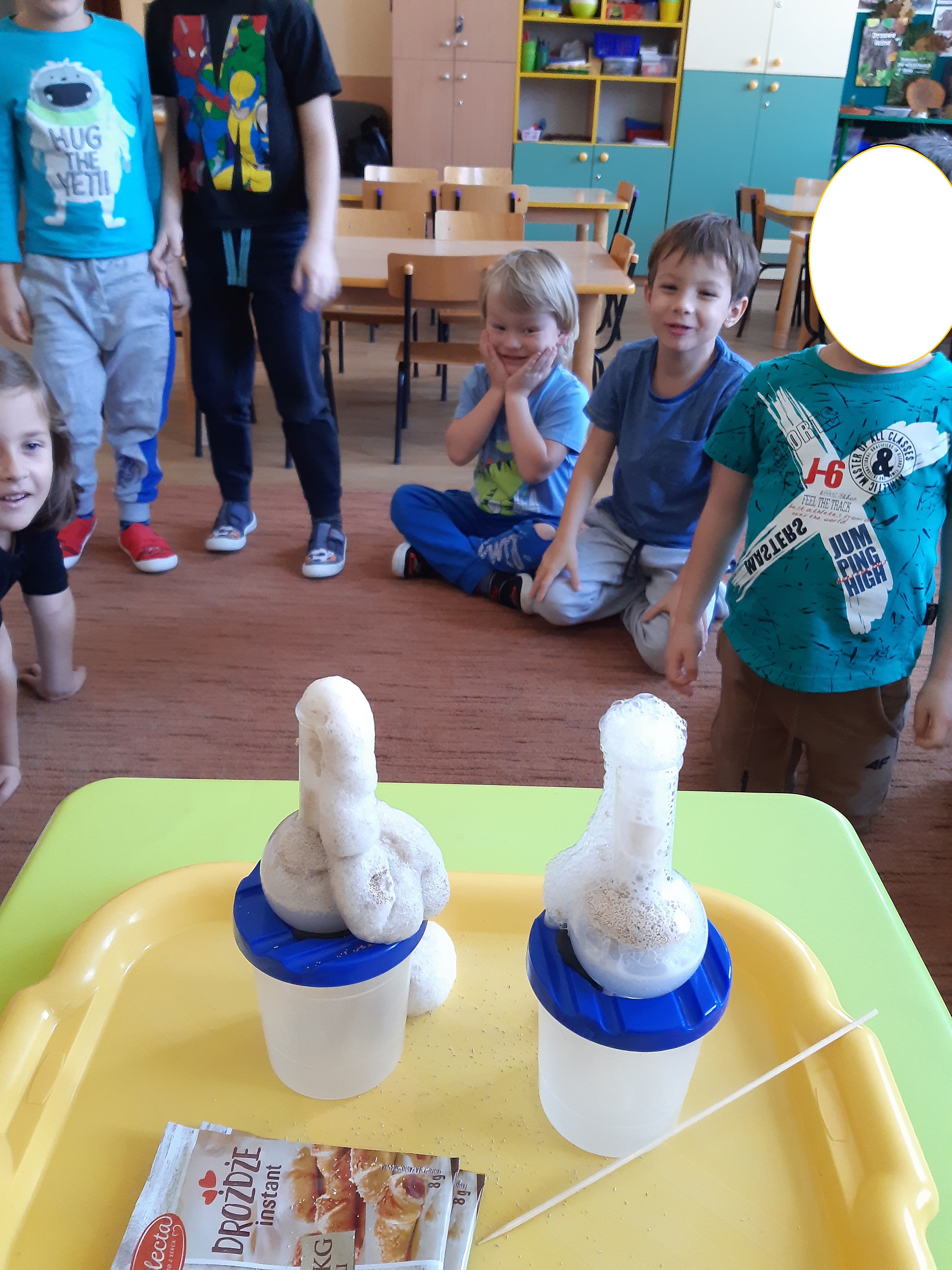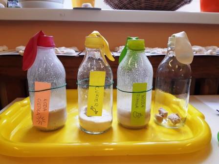 Poznaliśmy również inną postać drożdży – drożdże suche i tu wykonaliśmy podobne doświadczenia chcąc sprawdzić czy pod taką postacią drożdże również „rosną”.