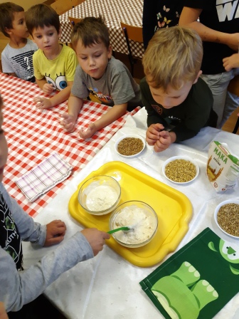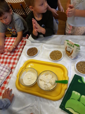 Na zakończenie tygodni badań przygotowaliśmy ciasto drożdżowe (poznając przy okazji różne ziarna zbóż) obserwując jak podwaja swoją objętość. Dzięki tym doświadczeniom zgłębiliśmy wiedzę na temat tak oryginalnych grzybów jakimi są drożdże . Teraz już możemy być ekspertami w domowych wypiekach . Anna Ryba , Agnieszka Przeworska .