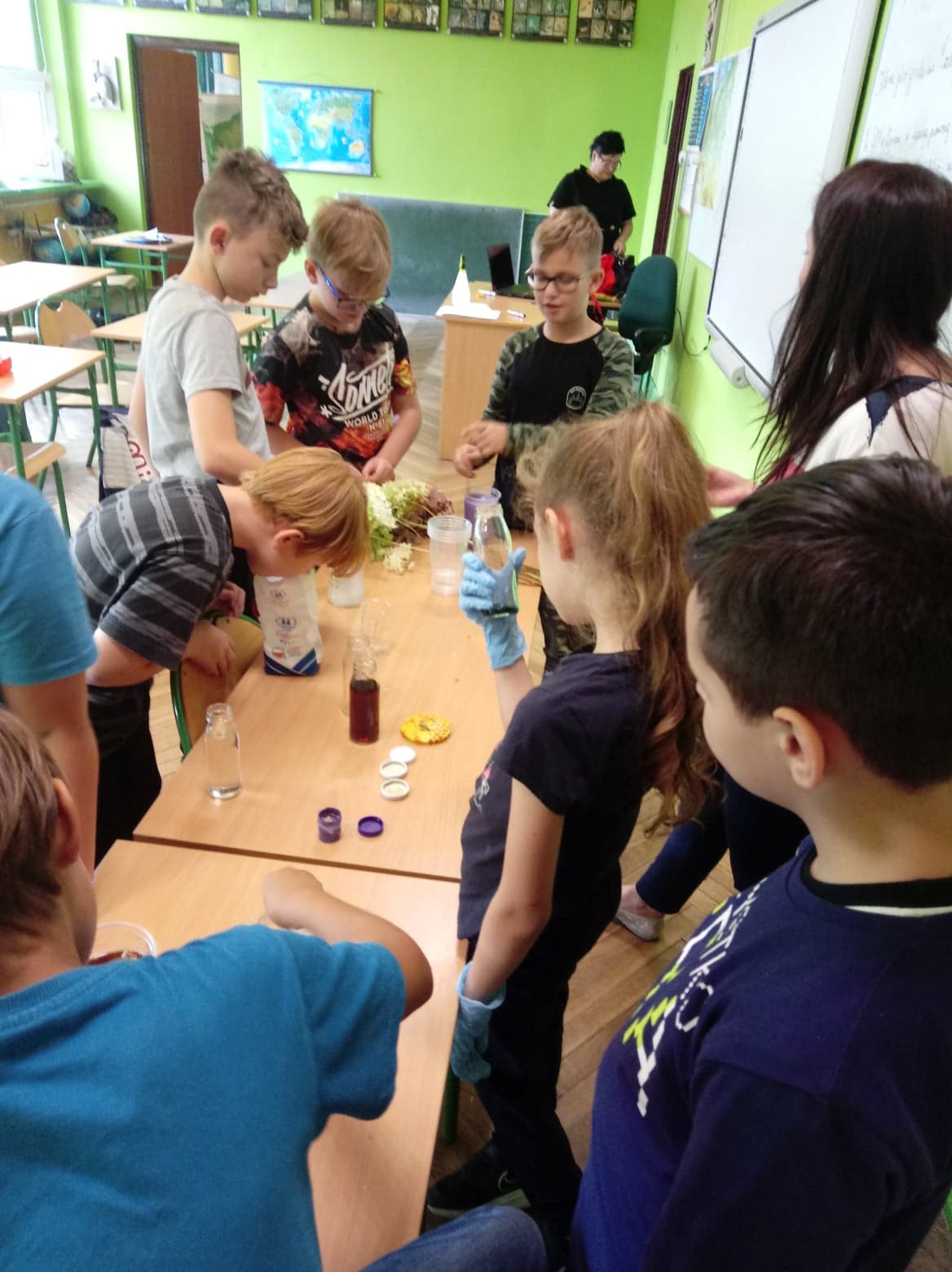W ramach projektu szkolnego wraz z klasami trzecia i czwartą przeprowadziłam zajęcia „Co pije kwiat?”. Była to jednocześnie lekcja otwarta dla nauczycieli.