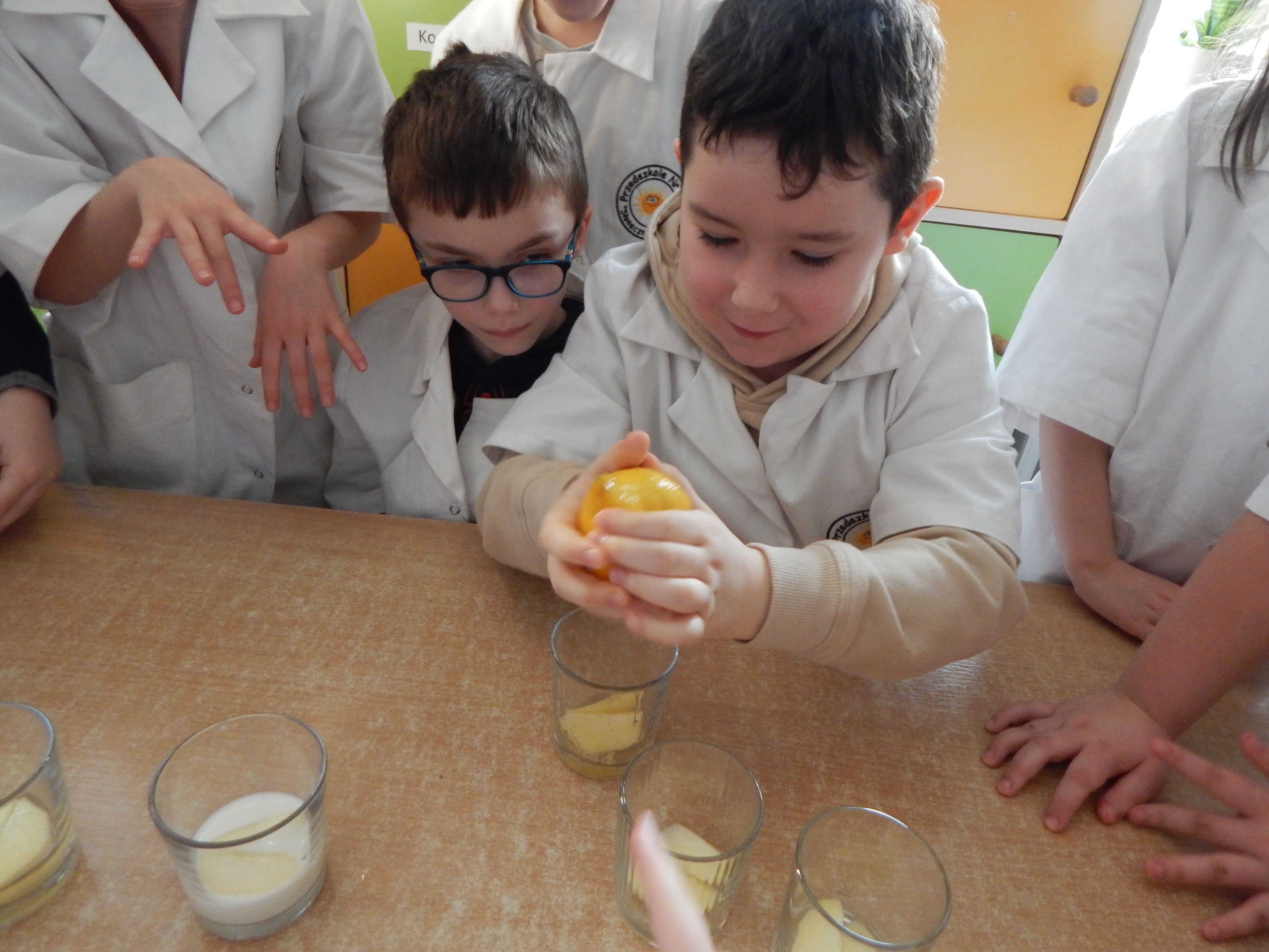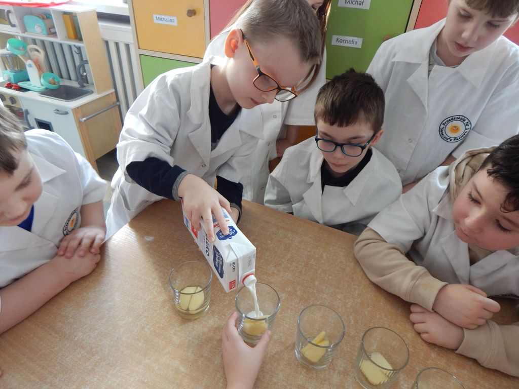„Kuchenne eksperymenty” to kolejne wyzwanie dla Klubu Małych Odkrywców z Publicznego Przedszkola nr 3 „Słoneczne” w Pleszewie. Klubowicze do eksperymentów tym razem wykorzystali produkty spożywcze. Dzieci stawiały hipotezy i weryfikowały je na drodze samodzielnych doświadczeń. Poznały właściwości i działanie drożdży i samodzielnie zrobiły ciasto. Było też wybuchowo i musująco ,gdy do akcji wkroczyła soda i ocet. Dzieci poznały sposoby powstawania gazów. Eksperymentowały też z owocami i warzywami. Eksperymenty przygotowała dla dzieci założycielka i opiekunka klubu Dorota Waliszewska –Kot.