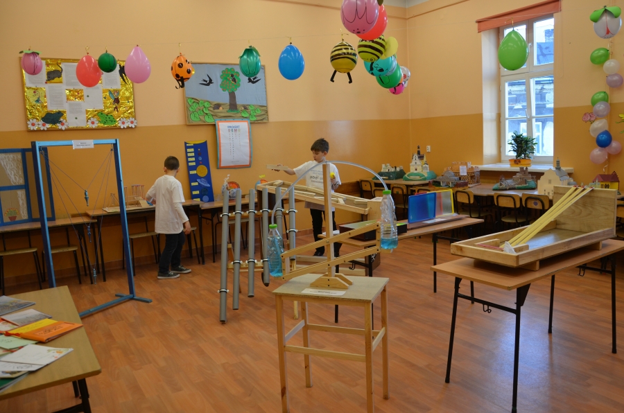 Ponieważ w naszej szkole brak miejsca na korytarzach jest ogromną przeszkodą, dlatego będziemy jednocześnie wystawiać około 5 stanowisk, po miesiącu zostaną one zmienione. Badania wykonane w Niemczech pokazują, że uczniowie, w których szkołach stacje eksperymentalne były dostępne przez dłuższy okres czasu, wykazywali większą ciekawość świata, częściej zadawali pytania, nie bali się eksperymentować.