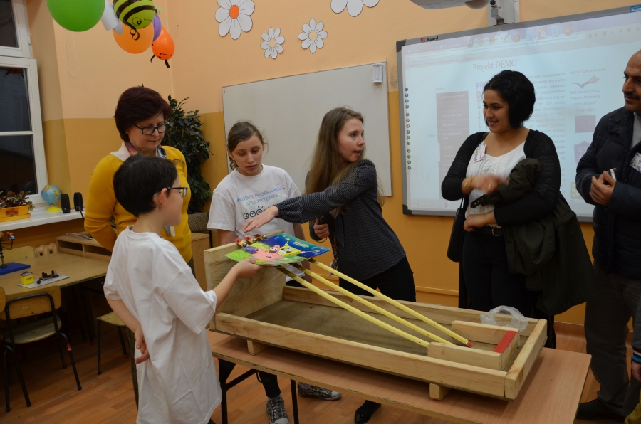 W Jedenastce pomysłodawczyni projektu pani Aneta Jabłońska nazwała go projektem DEMO od pierwszych liter słów, które powinny być często powtarzane dzieciom DOŚWIADCZAJ, EKSPERYMENTUJ, MYŚL, ODKRYWAJ. Już w listopadzie 2015 roku udostępniony został uczniom prosty telefon, wykonany z lejków i węża ogrodowego, łączący II piętro z parterem. Obecnie uczniowie wraz z rodzicami wykonali już 10 stacji, które cieszą się dużym zainteresowaniem wśród dzieci.