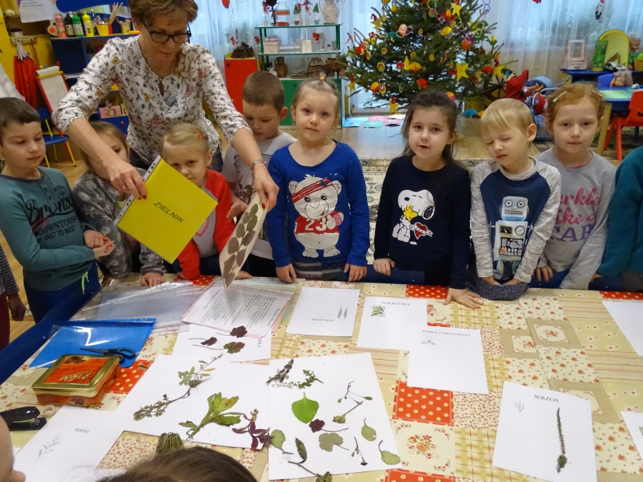 Jesienią bardzo pięknie kwitły kany, aksamitki, dalie i oczywiście astry. Dzieci zbierały nasiona oraz pomagały w wykopywaniu kłączy i bulw kwiatów z naszych gazonów. Wiosną znowu włożą je do ziemi, niektóre podpędzą w kącikach przyrody. Jesienne obserwacje pomogły przedszkolakom w dostrzeżeniu różnic między światem flory i fauny. Fascynacja różnorodnością świata roślin sprzyja ich obserwacji, opisywaniu, wykonywaniu szkiców. Najciekawsze okazy, zdaniem małych odkrywców, trafiają do zielników. Informacji na ich temat dzieci wyszukują w atlasach i encyklopediach roślin oraz w Internecie.