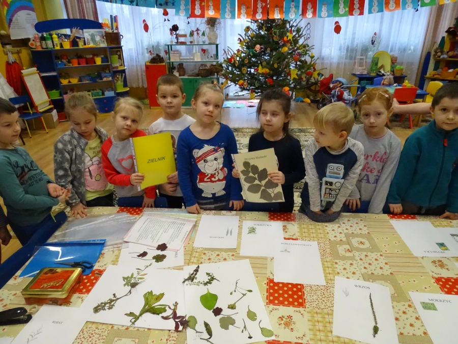 Wszystkie „Pchełki” już od jesieni gromadzą okazy przyrodnicze do swoich zielników.  Dzieci szczególnie zafascynowały kolorowe liście. W naszym ogrodzie, który ma już 50 lat, jest wiele kasztanowców, brzóz, wierzb, jesionów i klonów. Nawet maluchy potrafią rozpoznać te drzewa. Starszaki prowadziły obserwacje też innych roślin np. krzewów pigwy, bzu oraz do pierwszych przymrozków pomidorów i poziomek.