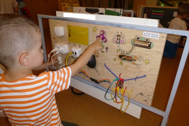 Tablica manipulacyjna to spełnienie marzeń każdego dziecka o swobodnym dostępie do miejsc będących zwykle poza jego zasięgiem. Potrzeba odkrywania i ciekawość świata, dzięki którym dzieci uczą się i rozwijają, zaspokajane są w kontakcie z najprostszymi przedmiotami codziennego użytku. Dzięki odpowiedniemu doborowi elementów zabawa stymuluje wszystkie zmysły.