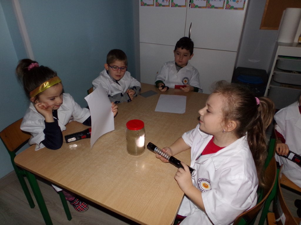 W minionym tygodniu „MALI ODKRYWCY” poznawali właściwości światła. Zajęcia były pełne eksperymentów, doświadczeń i praktycznych obserwacji. Dzieci poznały wybrane źródła światła i jego właściwości, np. załamanie, rozproszenie, barwy światła. Poznały też wynalazki dające światło. Dzieci stawiały hipotezy i weryfikowały je na drodze doświadczeń. Eksperymenty w zaciemnionym pomieszczeniu z wykorzystaniem latarek były dla „Małych Odkrywców” wielkim wyzwaniem. Indywidualny lapbook wypełniony rysunkami dzieci i naklejkami związanymi z eksperymentami ze światłem to ewaluacja tygodniowych zajęć.